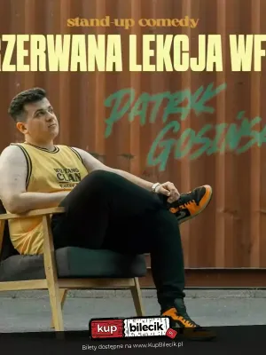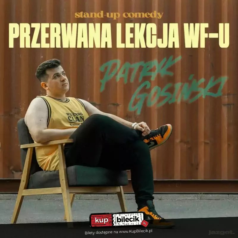 Zapraszamy na znakomity wieczór komediowy!Patryk Gosiński wystąpi ze swoim najnowszym programem "Przerwana lekcja wf-u"! Czego się nie dowiesz? Na kogo głosować i w co wierzyć i jak zrobić lasagne... Ale dowiesz się co to takiego daddy issues, jak zacząć czytać lektury i uniknąć rozwodu. Usłyszysz o minusach pracy w metrze i na scenie. To wszystko okraszone głupimi żartami i poradami dietetycznymi za friko!