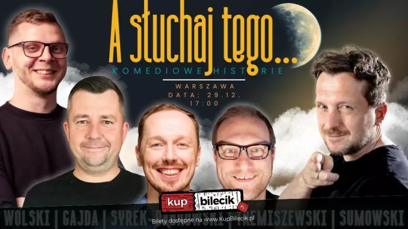 Przygotuj się na wieczór pełen śmiechu z Rafałem Sumowskim i jego gośćmi w Warszawie! Wydarzenie 'A słuchaj tego... Komediowe Historie' to unikalna mieszanka prawdziwych życiowych anegdot i kreatywnej improwizacji, która przeniesie Cię w zupełnie nowy wymiar humoru. Rafał Sumowski, znany ze swojego błyskotliwego dowcipu, poprowadzi show, które obiecuje być jednym z najśmieszniejszych wydarzeń sezonu.