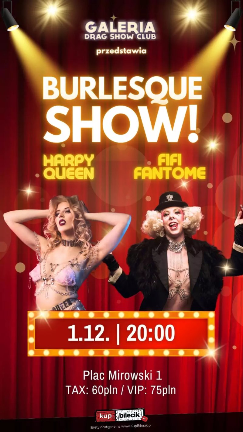 Przygotuj się na niezapomniany wieczór pełen zmysłowej burleski w sercu Warszawy! 1 grudnia 2024 roku, Galeria zaprasza na wyjątkowe show burleskowe na scenie imienia Kim Lee. Zobaczcie wyjątkowe występy Harpy Queen oraz Fifi Fantonome, która przyjedzie specjalnie dla Was z Berlina.