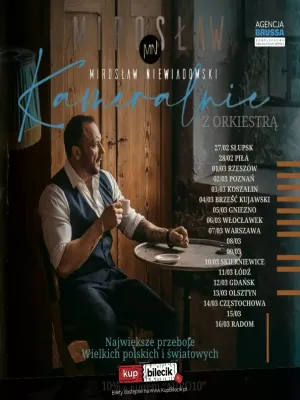 Podczas wydarzenia 'Mirosław Niewiadomski Kameralnie', artysta zaprezentuje swoje interpretacje największych przebojów polskich i światowych legend takich jak Frank Sinatra czy Elvis Presley. Będzie to wyjątkowa okazja, aby usłyszeć na żywo takie hity jak 'My Way', 'Can you feel the love tonight', czy 'Hallelujah'. Mirosław Niewiadomski, znany z emocjonalnego wykonania i wyjątkowej charyzmy, po raz pierwszy zaprezentuje się także jako instrumentalista na scenie.
