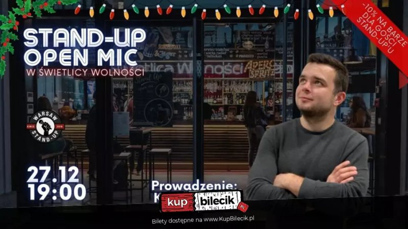 Odkryj magię stand-upu w samym sercu Warszawy! Każdy piątek w Świetlicy Wolności staje się areną dla śmiałków i miłośników dobrego humoru. Już 27 grudnia 2024 roku o godzinie 19:00 dołącz do nas na wyjątkowy wieczór pełen śmiechu, prowadzony przez charyzmatycznego Kamila Kozieła.