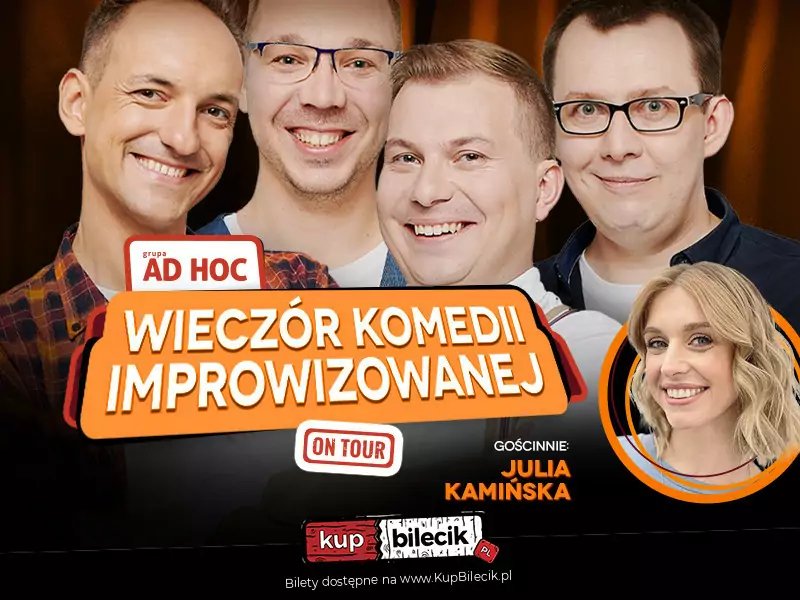 W programie wystąpią utalentowani członkowie Grupy AD HOC, w tym Michał 'Jeffrey' Ociepa, Michał Próchniewicz, Janek Malinowski i Alan Pakosz, a także gościnnie Julia Kamińska. Oprawę muzyczną zapewni Dawid Makosz. Od 2008 roku Grupa AD HOC bawi publiczność improwizacją komediową, mając na swoim koncie blisko 600 występów przed tysiącami widzów w całym kraju. Czego możecie się spodziewać? Wszystkiego!