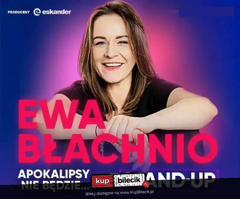 Ewa Błachnio, znana aktorka i stand-uperka, zaprasza na swój trzeci program stand-upowy, który rozbawi do łez! Po sukcesie trasy "Apokalipsy nie będzie...", artystka wraca z nowym, świeżym materiałem, który porusza istotne tematy społeczne i osobiste z niezwykłym poczuciem humoru.