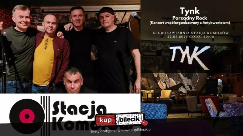 Przygotuj się na niezapomniany wieczór pełen emocji! Już 22 marca w Komorowie odbędzie się koncert legendarnego zespołu Tynk, który przeniesie Cię w czasy rockowych i punkowych lat 80-tych. Współorganizowany z Antykwariatem Stacji Komorów, ten występ to prawdziwa gratka dla fanów post-punku. Większość miejsc to miejsca stojące pod sceną, co zapewni wyjątkową atmosferę i bliskość z zespołem. Tynk to grupa, która za każdym razem robi furorę na naszej scenie, a ich energetyczny występ na pewno dostarczy Ci niezapomnianych wrażeń. Nie przegap tej okazji, by doświadczyć świetnej zabawy i poczuć rockowy klimat na żywo. Spędź ten wieczór wyjątkowo i dołącz do nas!