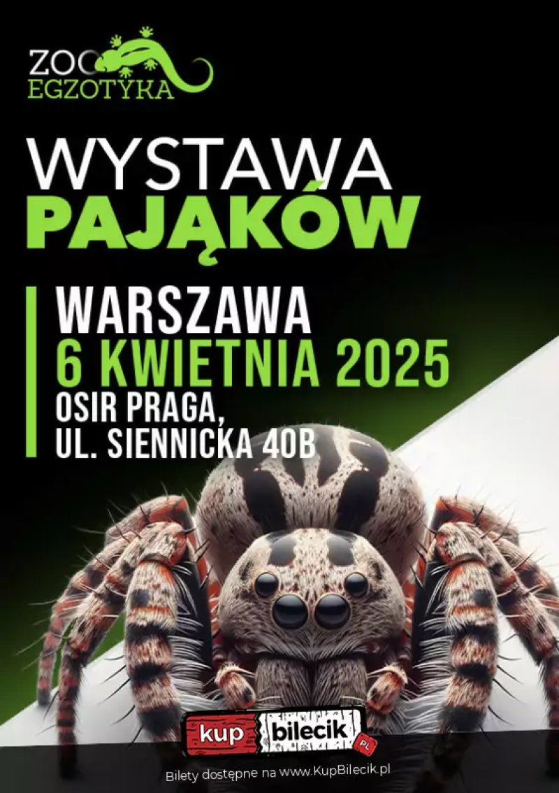 Odkryj fascynujący świat pająków na wyjątkowej wystawie w Warszawie! Już 6 kwietnia 2025 roku zapraszamy na niezwykłą wystawę, podczas której zobaczysz kilkadziesiąt unikalnych okazów dorosłych pająków z całego świata. To niepowtarzalna okazja, aby z bliska poznać największego pająka na Ziemi oraz te najbardziej jadowite gatunki.