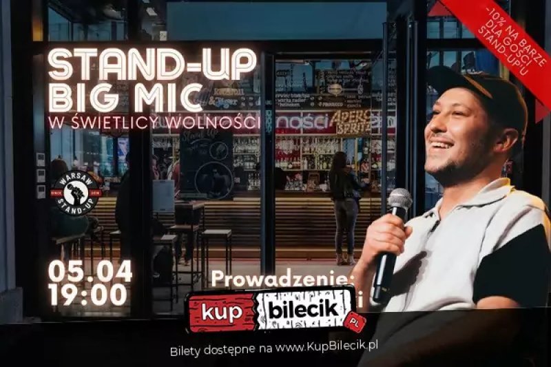 Przygotuj się na wieczór pełen śmiechu i emocji! 5 kwietnia 2025 roku w Warszawie odbędzie się Big Mic Stand-up, a jego gospodarzem będzie charyzmatyczny Tomek Kołecki. To wydarzenie to niepowtarzalna okazja, aby zobaczyć najlepszych komików w akcji! W Świetlicy Wolności, znanej z klimatycznych spotkań, czeka na Ciebie wieczór pełen humoru i znakomitych występów. Dłuższe, starannie przygotowane sety zapewnią Ci niezapomniane chwile i świetną zabawę. Przyjdź i doświadcz magii stand-upu w sercu Warszawy! Niech ten wieczór będzie wyjątkowy – dołącz do nas i świętuj z nami sztukę komediową! Spędź ten wieczór wyjątkowo i dołącz do nas!