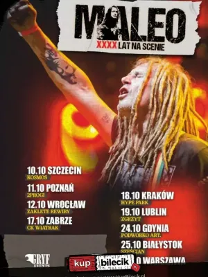 Dariusz Maleo Malejonek, prawdziwa legenda polskiej sceny muzycznej, zaprasza na wyjątkowy koncert, który odbędzie się 26 października 2025 roku w Warszawie. To niezwykła okazja, aby świętować 40 lat jego artystycznej kariery, podczas której artysta zyskał uznanie dzięki niezapomnianym utworom z zespołów takich jak Kult, Izrael, Houk, 2TM23, Moskwa czy Maleo Reggae Rockers. Podczas tego wieczoru usłyszymy największe przeboje, które na stałe wpisały się w historię polskiej muzyki, takie jak "Płonie Babilon", "Wolny naród" oraz "Żyję w tym mieście". To będzie pełen emocji wieczór, wypełniony wzruszeniami i cudownymi dźwiękami, który na długo pozostanie w pamięci. Muzyka reggae, rock i metal czeka na fanów, którzy pragną przeżyć niezapomniane chwile w towarzystwie jednego z najważniejszych artystów polskiej sceny. Spędź ten wieczór wyjątkowo i dołącz do nas!