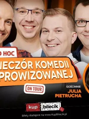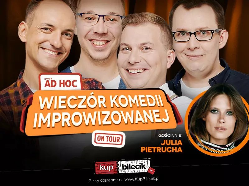 Przygotuj się na niezapomniany wieczór komedii improwizowanej z Grupą AD HOC w Warszawie! 19 września o godzinie 19:00 czeka na Ciebie wyjątkowe SHOW, w którym to Ty stajesz się współreżyserem! Wspólnie z naszymi utalentowanymi aktorami, takimi jak Michał Ociepa, Michał Próchniewicz, Janek Malinowski, Alan Pakosz oraz gościnnie Julia Pietrucha, przeżyjesz wieczór pełen emocji, śmiechu i zaskakujących zwrotów akcji.