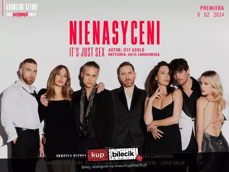Na scenie plejada znakomitych gwiazd: Magdalena Lamparska, Vanessa Aleksander, Olga Bołądź, Maciej Zakościelny, Piotr Witkowski / Robert Gulaczyk, Jakub Sasak.Spektakl Nienasyceni, w reżyserii Anity Sokołowskiej, powstał na podstawie tekstu amerykańskiego dramaturga Jeffa Goulda "It's just sex".