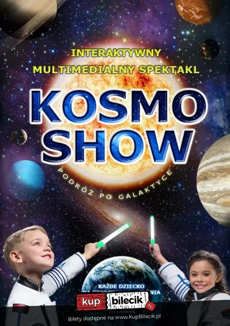 Kosmo Show to pełen humoru występ, w którym dzieci będą brały udział w grach, konkursach i tańcach. Razem z sympatycznymi postaciami, takimi jak Komandor Syriusz i jego załoga, mali uczestnicy wyruszą w podróż po galaktyce, pomagając pokonać groźnego Chaosa. Niezapomniane kosmiczne przygody czekają na Was!
