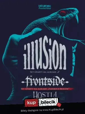 Hostia to polskie objawienie ostatnich lat na scenie grindcore. Zespół, znany z brutalnych, bezkompromisowych utworów, szybko zdobył serca miłośników ciężkich brzmień. Ich muzyka łączy szybkie, agresywne dźwięki z bujającym groove i chwytliwymi patentami ukrytymi pod warstwą hałasu. Hostia wydała jedną EP-kę oraz trzy pełne albumy, z czego ostatni "Nailed" ukazał się w listopadzie 2022 roku nakładem Deformeathing Productions. Zespół jest również znany z produkcji jednego z najlepszych merchów, na jaki kiedykolwiek można wydać pieniądze. Nie przegap tej niezwykłej okazji, aby zobaczyć na żywo legendarny zespół Illusion oraz ich wyjątkowych gości - Frontside i Hostia. Do zobaczenia na koncertach!