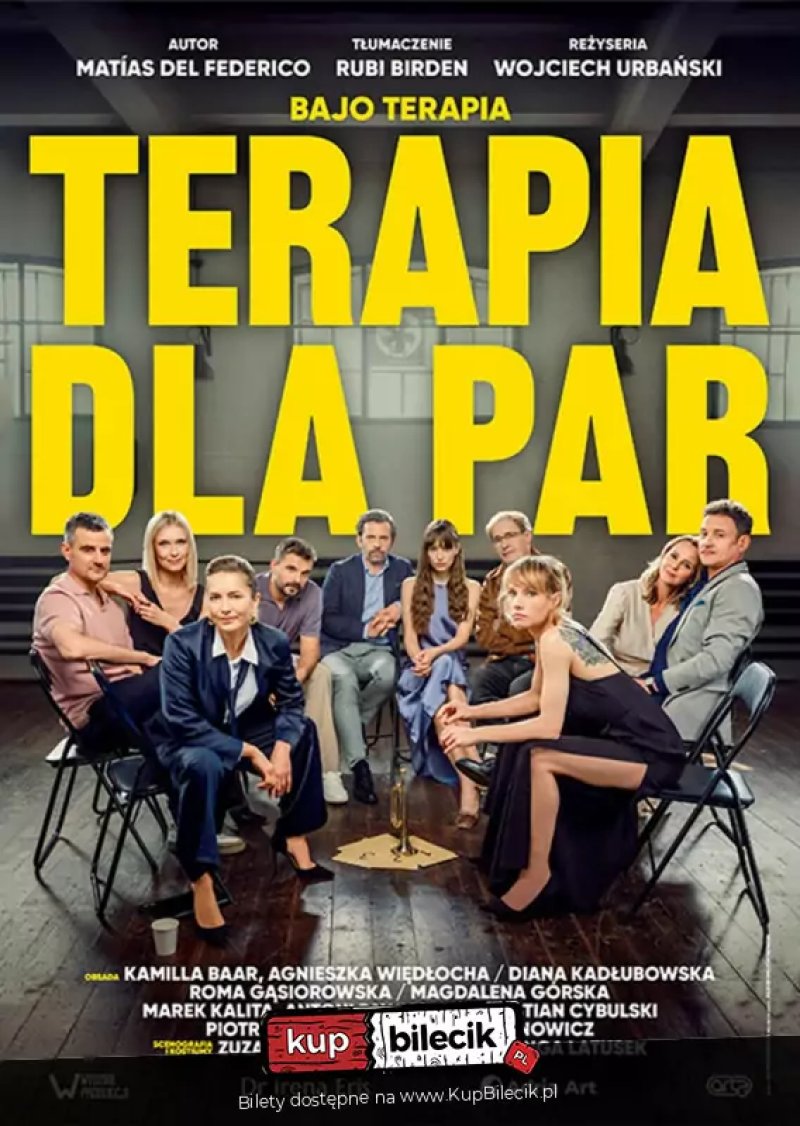 "Terapia dla par" to wyrazista sztuka, która łączy błyskotliwy humor z celnością obserwacji. Znakomita obsada, w tym Kamilla Baar, Roma Gąsiorowska i Marek Kalita, rozbawi Cię do łez i sprawi, że na nowo odkryjesz, jak ważne są kompromisy w związku. Nie przegap tego niepowtarzalnego spektaklu, który obiecuje świetną zabawę i niezapomniane chwile.