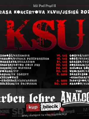 Już 17 października w Warszawie odbędzie się niezapomniany koncert zespołu KSU w ramach trasy "Idź Pod Prąd II". To wyjątkowa okazja, aby zobaczyć na żywo jedną z legend polskiego punk rocka. KSU zaprezentuje zarówno swoje kultowe utwory, jak i nowsze kompozycje, które na pewno porwą publiczność do wspólnego śpiewania.