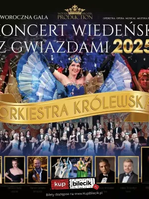 Wracamy i zapraszamy Państwa w podróż do roztańczonego, magicznego Wiednia oraz energetycznego Nowego Jorku, gdzie będą rozbrzmiewać najpiękniejsze arie, duety, walce i polki Johanna Straussa, Franca Lehara, Imre Kalmana a także największe szlagiery musicalowe, filmowe i światowe przeboje wszech czasów. Tegoroczny koncert w wykonaniu światowej. W programie udział wezmą międzynarodowi artyści - znani polskiej i międzynarodowej publiczności a wśród Agata Sava mezzosopran - solistka opery w Pradze, która koncertuje aktywnie na scenach całego świata takich jak: Chicago Philharmonic Hall, Filharmonia Narodowa w Warszawie, Lucerne Concert Hall i wiele innych. Jest absolwentką Hohschule fur Musik w Monachium. Barbara Gutaj sopran, solistka Teatru Wielkiego w Poznaniu, wyróżniona prestiżową Teatralną Nagrodą Muzyczną im. Jana Kiepury w kategorii "Najlepszy Debiut" za debiut na deskach Mazowieckiego Teatru Muzycznego. Debiut w Teatrze Wielkim Poznaniu miał miejsce podczas premiery "Fausta" A. Radziwiłła w reżyserii Adama Hanuszkiewicza, gdzie jej rolę Małgorzaty Józef Kański w "Ruchu muzycznym" określił jako "operowe odkrycie sezonu".Nazar Tatsyshyn - tenor niezaprzeczalnym numerem jeden wśród tenorów młodego pokolenia. Solista obdarzony pięknym głosem śpiewającym w najlepszej tradycji włoskiego Bel Canta jest solistą Opery Narodowej w Budapeszcie. Andrzej Witlewski aktor, wokalista - bas od lat współpracuje z wieloma instytucjami kultury polskiej. Koncert uświetni swoim udziałem niezwykły wirtuoz skrzypiec Marjan Lomaha, który ostatnie 3 lata spędził w Japonii koncertując w każdej sali koncertowej tego kraju. Lomaha koncertował również m.in.: w Filharmonii Berlińskiej, Concertgebow w Amsterdamie, w lipskim Gewandhaus. W tym roku wystąpi w Polsce. W jego wykonaniu usłyszymy wirtuozowskie parafrazy ze Skrzypka na dachu, Czardasza Montiego, utwory z repertuaru Roby Lakatosa. Całość koncertu poprowadzi znany światowej publiczności dyrygent i wirtuoz klarnetu Maestro Woytek Mrozek, który aktywnie koncertuje na całym świecie. "..Mrozek należy do grona poszukiwanych na świecie artystów..." napisała Süddeutsche Zeitung w Monachium. Artysta słynie z niekonwencjonalnych pomysłów i nieposkromionej wyobraźni. Artyści przeniosą słuchaczy do ojczyzny walca prezentując niezwykły kunszt wokalny i instrumentalny. Ta niezwykła gala będzie wzbogacona wirtuozerskim tańcem par tanecznych, barwnymi kreacjami i bogatą choreografią, co pozwoli na doświadczenie wielu doznań artystycznych w iście książęcym stylu. Pary taneczne to soliści Narodowego Teatru Opery i Baletu we Lwowie. W ten magiczny wieczór zabrzmią największe przeboje Króla walca Johanna Straussa takie jak uwertura z Zemsty Nietoperza, Keiser Marsz, Marsz Radezki, walc "Nad pięknym modrym Dunajem", "Odgłosy wiosny" a także polki Trich Trasch, Eljen Magiar Polka, Anne Polka, Gromy i Błyskawice i wiele innych orkiestrowych szlagierów. Nie zabraknie także popisowych arii i duetów z najsłynniejszych operetek: Zemsty Nietoperza, Barona Cygańskiego, Księżniczki Czardasza, Hrabiny Maricy, Wesołej Wdówki czy Krainy Uśmiechu. Publiczność wysłucha między innymi: arie "Adeli", "Czardasz Sylvi", kuplety Barinkaya "Wielka sława to żart", "Graj Cyganie", " Artystki z Variete", "Brunetki Blondynki" a także duety wszechczasów, m.in. "Usta milczą dusza śpiewa", "Jakże mam Ci wytłumaczyć", " Jedź do Verasdin", " Co się dzieje oszaleję", "W rytm walczyka", "Tłumy Franków" z Księżniczki Czardasza. Nie zabraknie także sztandarowych pieśni neapolitańskich takich jak: "Funikuli-Funikula", "O Surdato N'namurato". W drugiej części koncertu artyści zaprezentują się w repertuarze musicalowym, filmowym i światowych przebojów m.in.: "Za Tobą pójdę jak na bal" - K. Krawczyka, "Wielka Miłość" - S. Krajewskiego, "Delilah" - T. Jonsa, "Nella Fantasia" z filmu Misja, "New York-New York" - F. Sinatry,"Volare", "O sole mio" - w wersji E. Presleya, "Przetańczyć całą noc" z musicalu My Fair Lady, "Gdybym był bogaczem" z musicalu Skrzypek na dachu i wiele innych noworocznych, muzycznych niespodzianek.