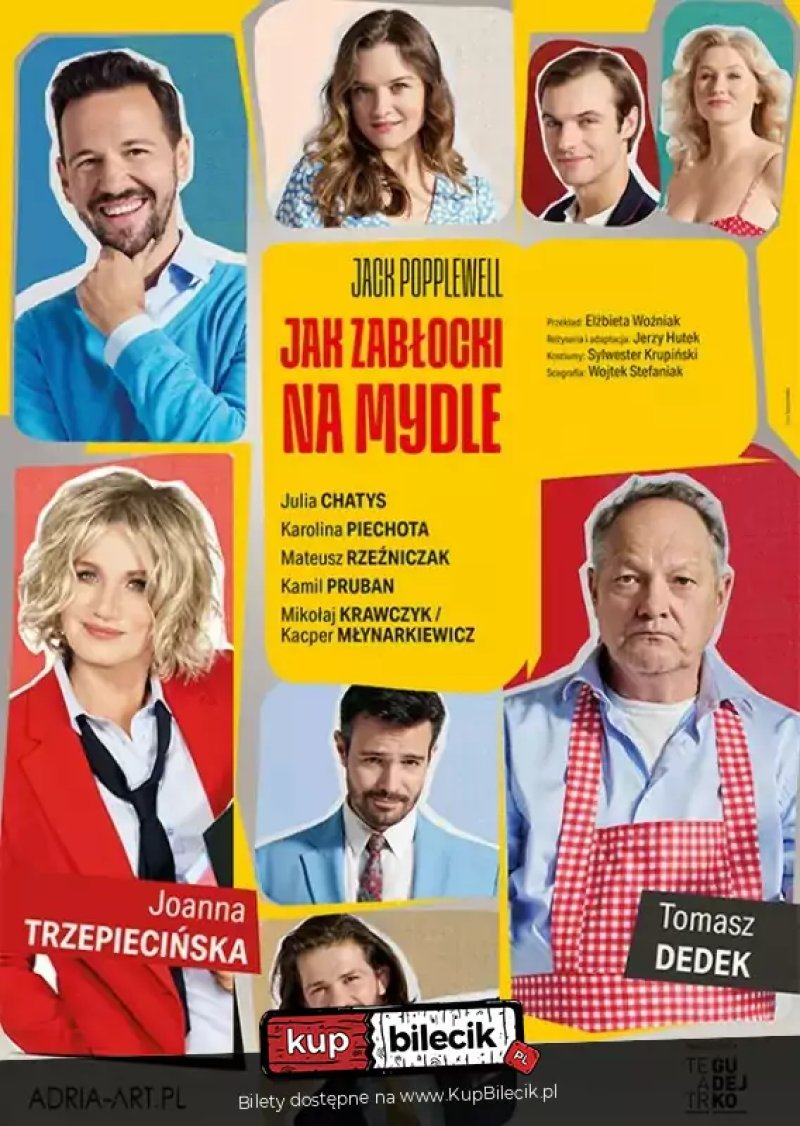 Jak wyjść bez szwanku ze zderzenia odmiennych potrzeb, ze stłuczki dwóch światów - kobiecego i męskiego? Jak wyślizgnąć się spod walca utartych schematów? Małżeństwo z długim stażem (Joanna Trzepiecińska i Tomasz Dedek) decyduje się na radykalny krok - zamianę ról! "Jak Zabłocki na mydle" to zwariowana komedia autorstwa Jacka Popplewella w brawurowej adaptacji i reżyserii Jerzego Hutka. To opowieść dla wszystkich, którzy kiedykolwiek marzyli o zrzuceniu jarzma codziennych stereotypów. Chcesz się przekonać, kto na tym wszystkim wyjdzie jak przysłowiowy Zabłocki na mydle? Ruszaj śmiało do teatru i przekonaj się na własne oczy! Sprawdź repertuar występów i zarezerwuj bilety.