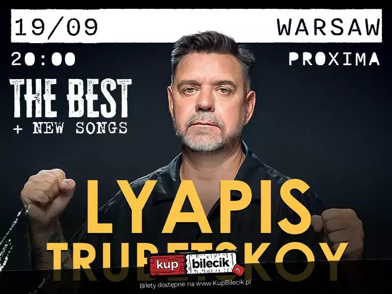 Przygotuj się na wieczór pełen emocji z legendarnym zespołem Lyapis Trubetskoy! Już 19 września 2025 roku Warszawa stanie się miejscem, gdzie rock i energia spotkają się w niezapomnianym występie. Lyapis Trubetskoy wraca na scenę, aby porwać publiczność swoimi ikonicznymi hitami, takimi jak 'Warriors of Light', 'Capital' i 'Au'. To koncert, którego nie możesz przegapić! Przeżyj muzyczną rewolucję i poczuj moc dźwięków, które jednoczą pokolenia. To nie tylko koncert, to historia, którą tworzymy razem. Zarezerwuj swoje miejsce i bądź częścią tego wyjątkowego wydarzenia w Warszawie. Spędź ten wieczór wyjątkowo i dołącz do nas!