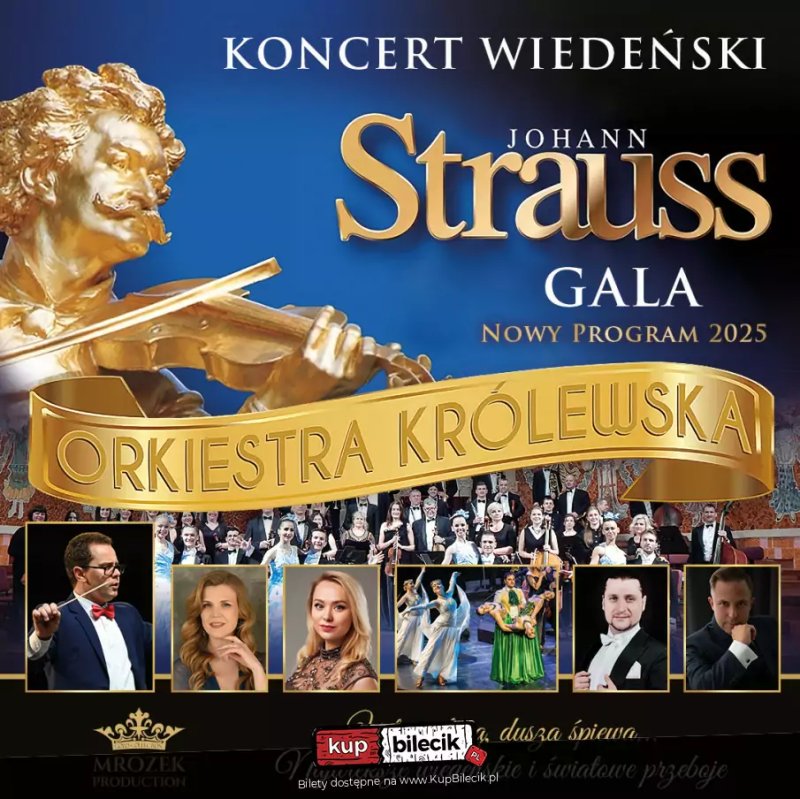 Przygotuj się na niezapomniany wieczór pełen emocji z Koncertem Wiedeńskim w Warszawie! 17 stycznia 2026 roku Królewska Orkiestra pod batutą Romana Dzundzy zabierze Cię w magiczną podróż do Wiednia, gdzie rozbrzmiewać będą najpiękniejsze arie i walce Johanna Straussa oraz innych wielkich kompozytorów. Wystąpią utalentowani soliści, w tym Katarzyna Czekanowska, Wiktoria Melnik, Aleksander Kruczek i Yuri Hryhorasz, którzy zachwycą publiczność swoim kunsztem wokalnym. Gala wzbogacona będzie wirtuozerskimi tańcami par tanecznych z Narodowego Teatru Opery i Baletu we Lwowie, co sprawi, że wieczór będzie pełen artystycznych doznań w iście książęcym stylu. Usłyszysz m.in. uwerturę z 'Zemsty Nietoperza', 'Nad pięknym modrym Dunajem' oraz wiele innych niezapomnianych utworów. Dołącz do nas na tym wyjątkowym wydarzeniu i przeżyj wieczór, który na długo pozostanie w Twojej pamięci!