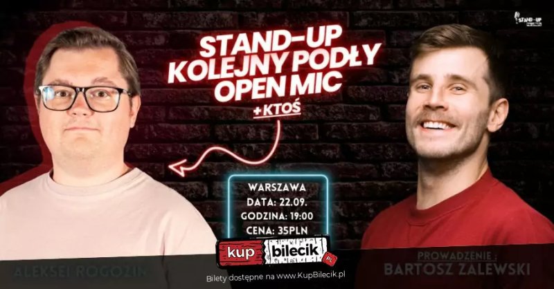 W premierowej edycji wieczoru wystąpi Aleksiej ROGOZIN, który wciągnie Cię w świat swojego unikalnego spojrzenia na rzeczywistość. Jego występy to mieszanka łez i śmiechu, które na długo zapadną w pamięć. Dzięki rosyjskim korzeniom, ROGOZIN potrafi w zabawny sposób komentować codzienność, co czyni go jednym z najbardziej intrygujących komików na scenie.